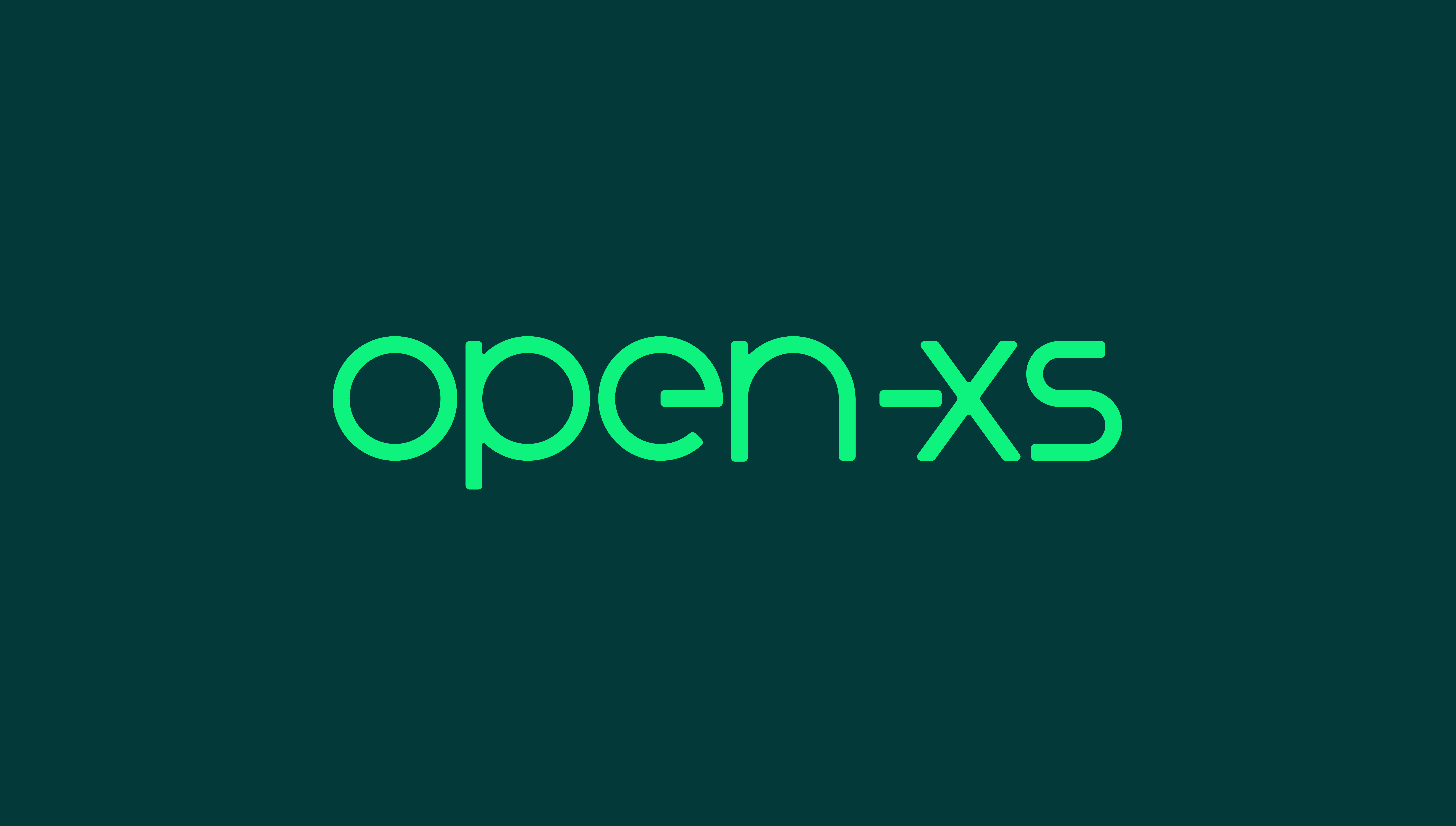Het logo van Open-XS is een eigentijdse doorontwikkeling van het oorspronkelijke ontwerp. In het nieuwe ontwerp zijn herkenbare elementen behouden. De ‘e’ bevat een aan/uit-knop. Het verbindingsstreepje vormt samen met de linkerzijde van de ‘x’ een pijl, als symbool voor innovatie en vooruitgang. Het logo laat zien waar we voor staan: open, toegankelijk en gericht op de toekomst.